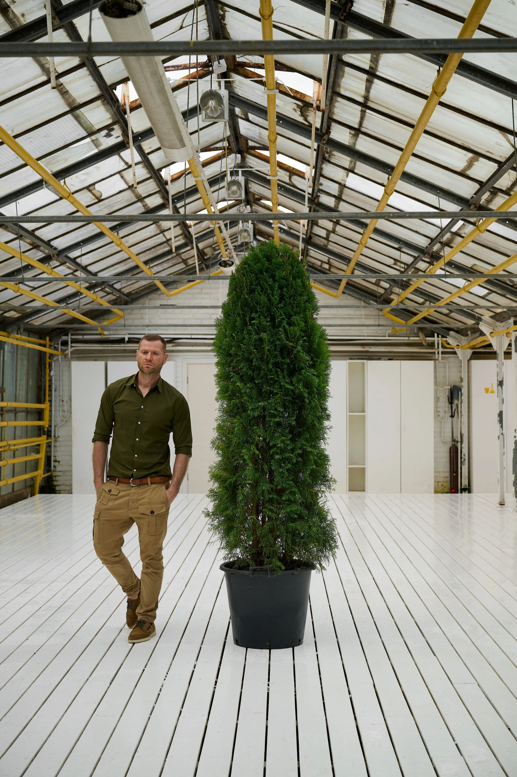 Туя Западная Смарагд - очень частая позиция для озеленения летних веранд. Растение относительно не прихотливое, но лучше чувсвтует себя в светлых, солнечных местах, в тень размещать не желательно. К Туе Смарагд маожно выбрать кашпо нескольких цветов.