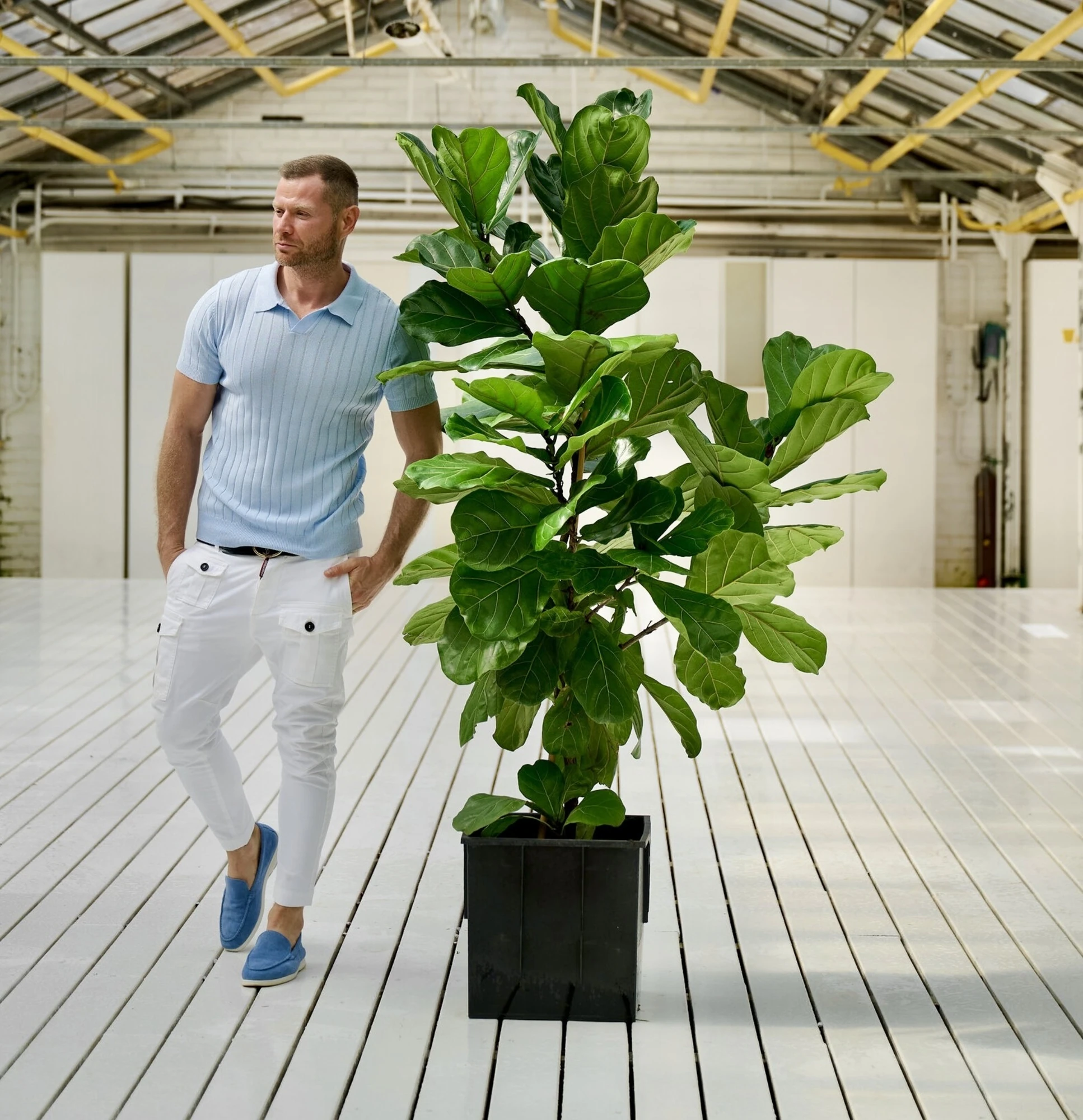 К Фикусу Лирата можно взять кашпо 4 цвета - белый, серые, черные, деервянные