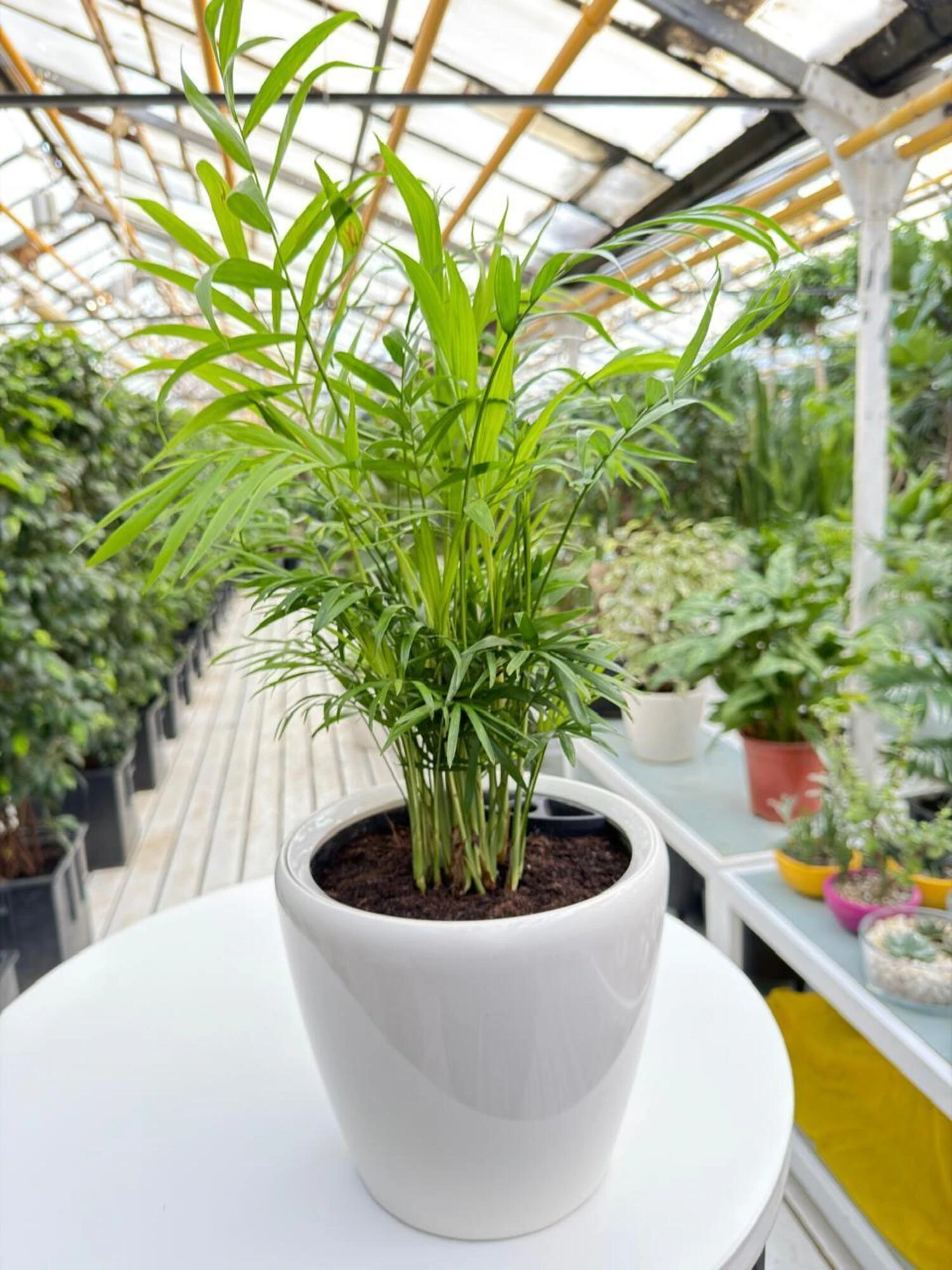Хамедорея Элеганс (Chamaedorea Elegans) - эффектная невысокая пальма. Растение имеет ползучий ствол, из которого в большом количестве вырастают тоненькие прямостоячие стебли. В верхней части стеблей собраны метелки, состоящие из 6-7 длинночерешковых близко сидящих листочков, окрашенных в зеленый цвет. Со временем листочки опадают, оставляя на стебле кольцеобразные следы светлого оттенка. Перистые дуговидно отогнутые листья имеют от 12 до 15 пар ланцетно-линейных долей, которые в длину могут достигать 20 сантиметров. Растение культивируется как высокодекоративное, в том числе активно используется декораторами в оформлении мероприятий.